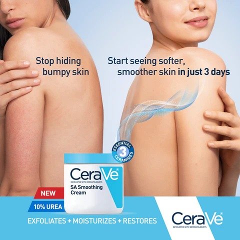 Original Cerave SA Smoothing Cream 340ml in Sri Lanka, this cream exfoliates and hydrates rough, bumpy, and dry skin while improving the skin texture. Developed with dermatologists, CeraVe SA Smoothing Cream is a fragrance-free, rich moisturizer formulated to remove dead skin cells, and leave skin feeling soft and smooth.