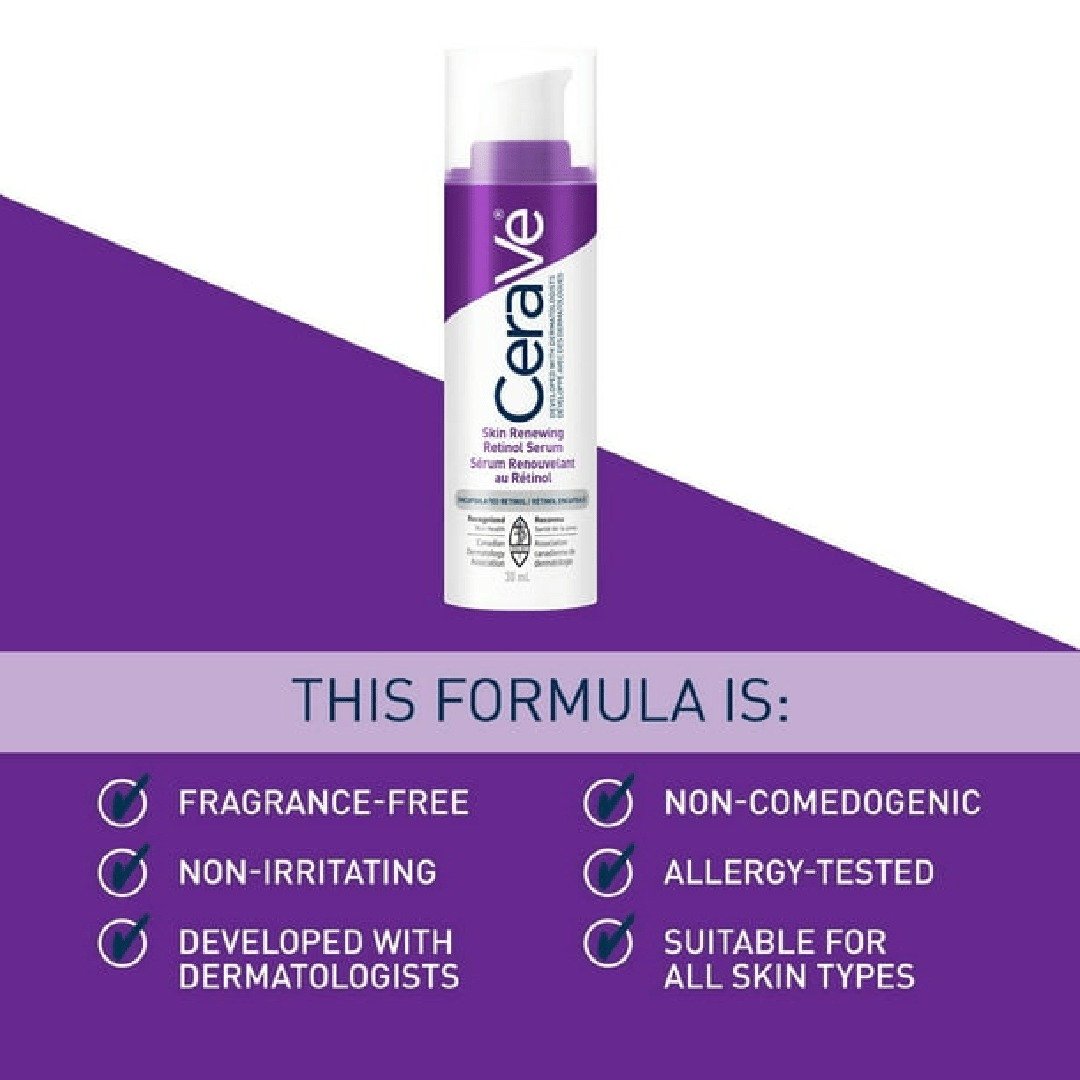 Cerave Skin Renewing Retinol Serum 30ml is a lightweight, non‑irritating serum formulated with encapsulated retinol to help visibly improve skin texture and reduce the appearance of fine lines. Designed for daily use, it supports skin renewal while maintaining hydration thanks to Cerave’s signature blend of three essential ceramides and hyaluronic acid. Ideal for those seeking smoother, healthier‑looking skin without unnecessary irritation.